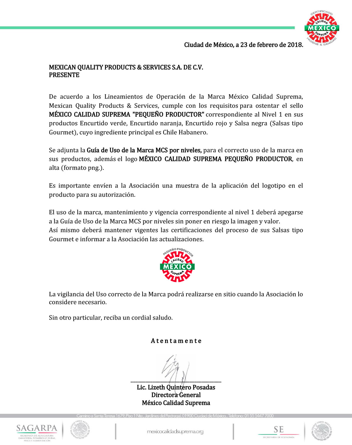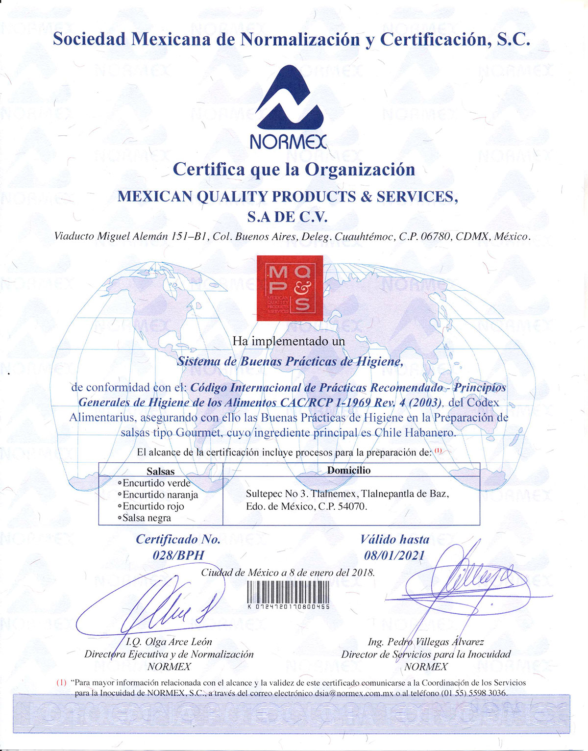 Mexican Quality Products & Services S.A. de C.V.is defined as an enterprise that formulate, process, transform and sell gourmet quality products in mexican local market. Taking into consideration the customer specialization and global market, we start with the first line of products from "Eki" Trade Mark. This line is based in habanero sauce and pickles. In medium terms we will focus in developing more products to add to our gourmet products portfolio.